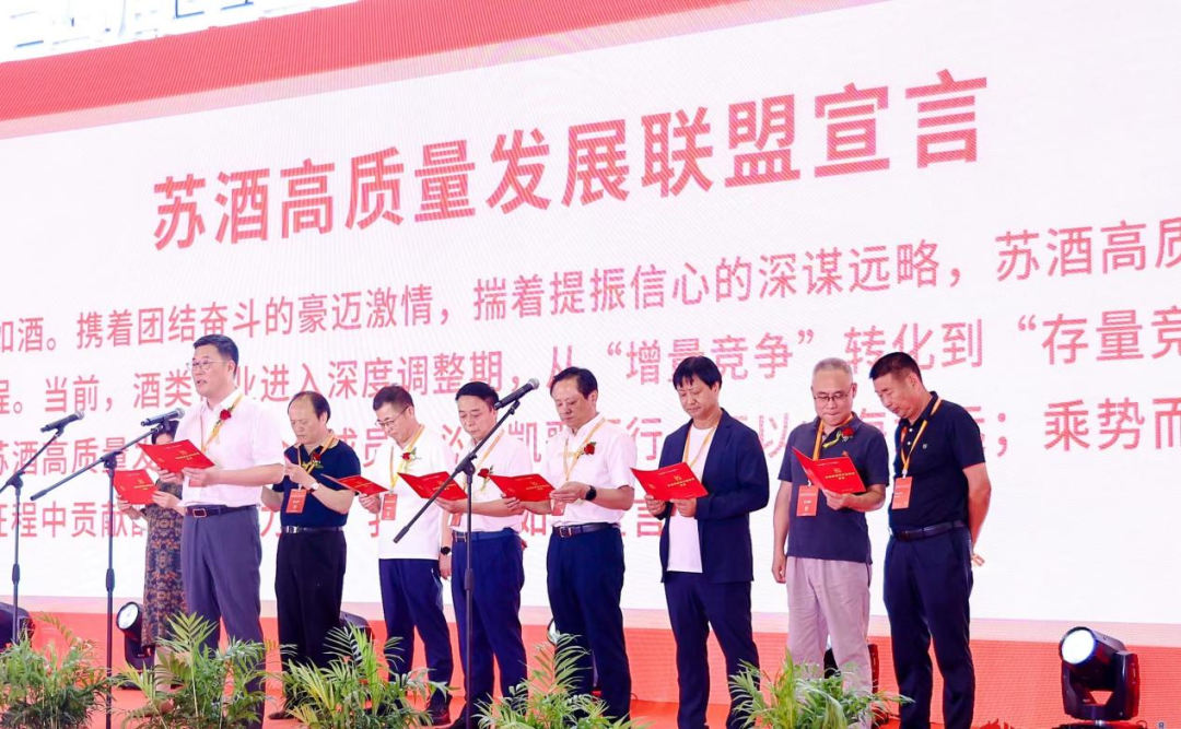 南京糖酒会是苏酒高质量发展成果展示重要平台,在展会现场,由第四届“苏酒高质量发展联盟”轮值主席朱耀汇带领,苏酒高质量发展联盟成员们在开幕式上共同宣读了“苏酒高质量发展联盟宣言”,苏酒高质量发展之声再度从南京糖酒会传递到全国。